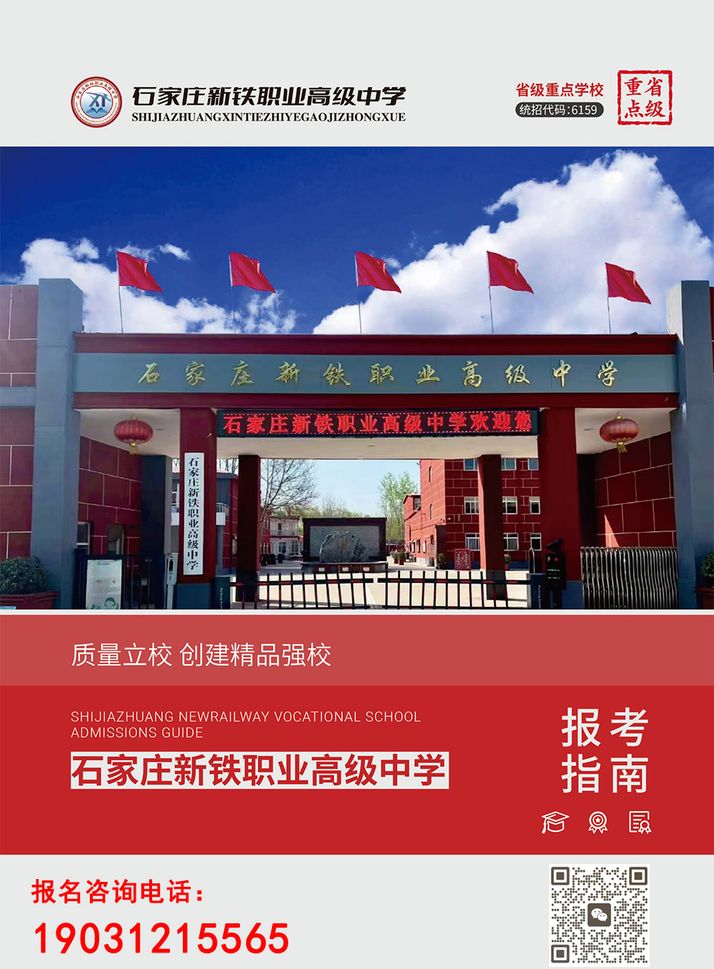 石家庄新铁职业高级中学是经石家庄市教育局批准、教育部备案,实行统招和自主招生的一所全日制综合性省级重点职业高中。
